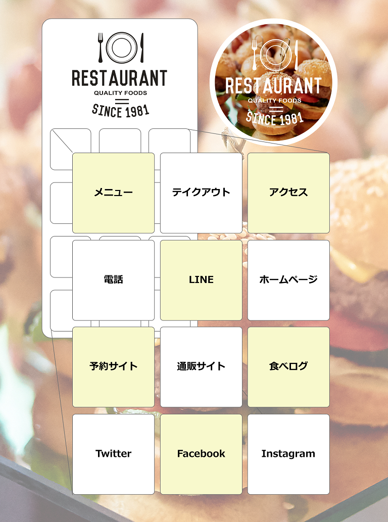 お店のメニュー画像などをアップすることで「電子メニュー」として活用できます。非接触対策としてご活用ください。